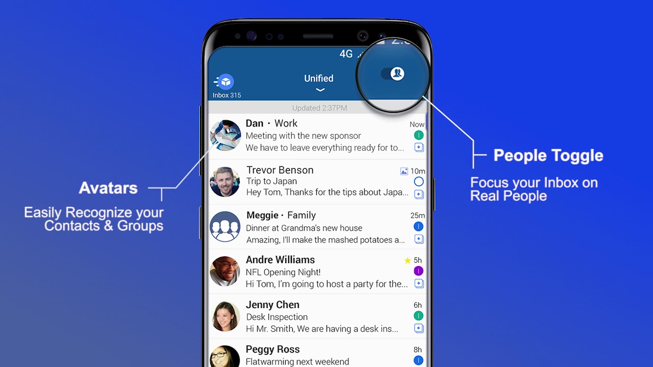 Edison Mail is the 2017 Android Excellence Program winner and one of the most attractively designed email clients in the Google Play Store. Gmail, Yahoo Mail, AOL Mail, Hotmail, Outlook, Exchange, IMAP, Alto, iCloud, and more email providers are supported. Edison Mail includes an intelligent personal assistant that maintains your inbox and promptly replies to your inquiries, significantly decreasing the time it takes to find information from emails.